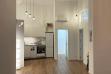 It offers a total surface area of 80 m² distributed into an open-plan kitchen with living-dining area, two bedrooms, one bathroom, and a utility room. The apartment has been recently renovated.